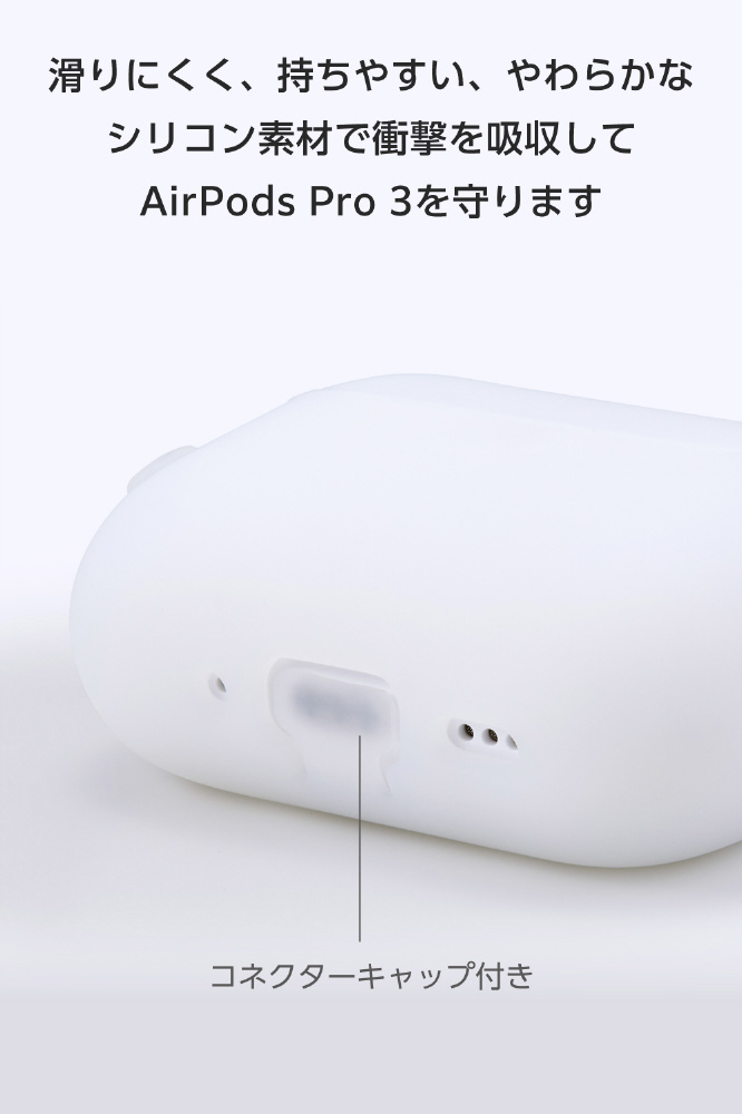 MagSafe充電に対応し、やわらかいシリコンでしっかり守るAirPods Pro 3用シリコンケースです。