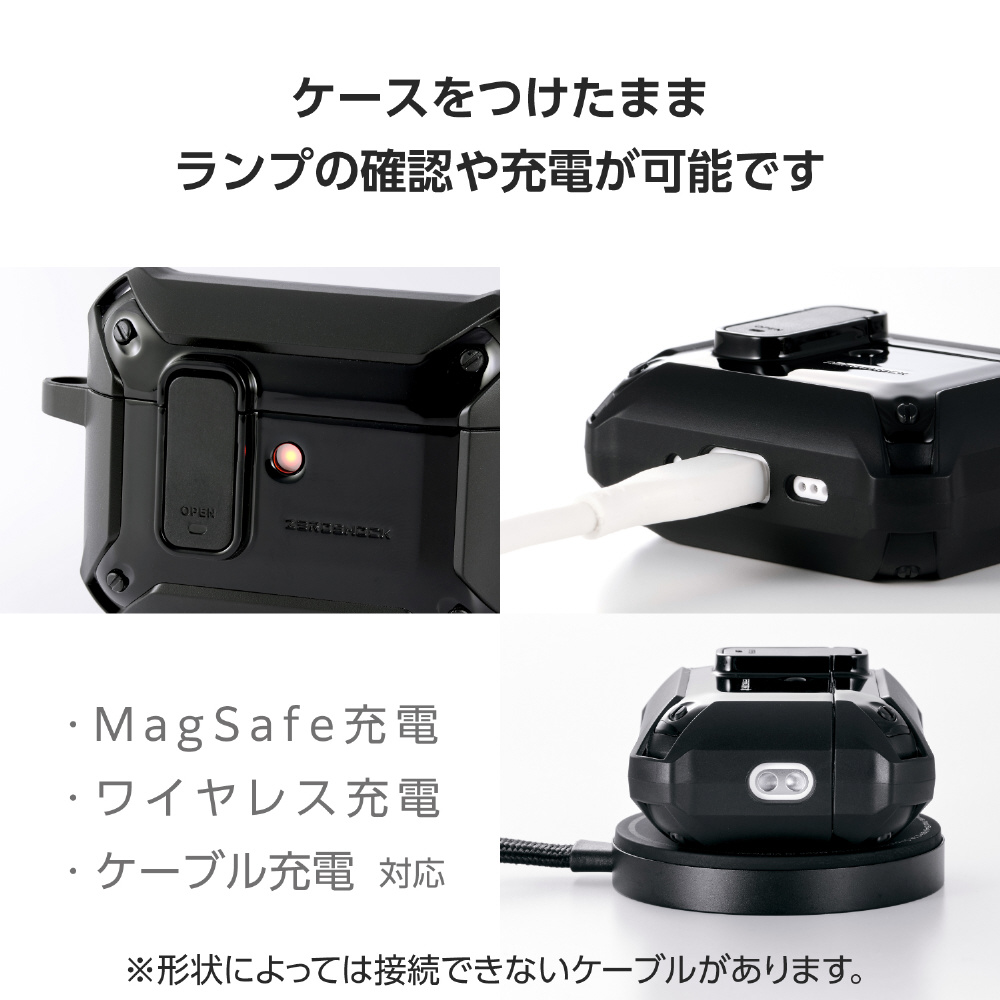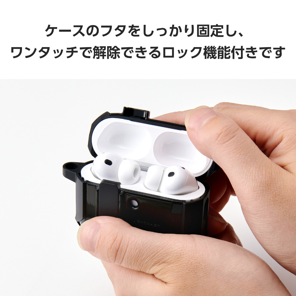 落下時に本体の飛び出しを防ぐロック機能付き!3つの衝撃吸収構造で衝撃から守るAirPods Pro 3用ZEROSHOCK Lockハイブリッドケースです。