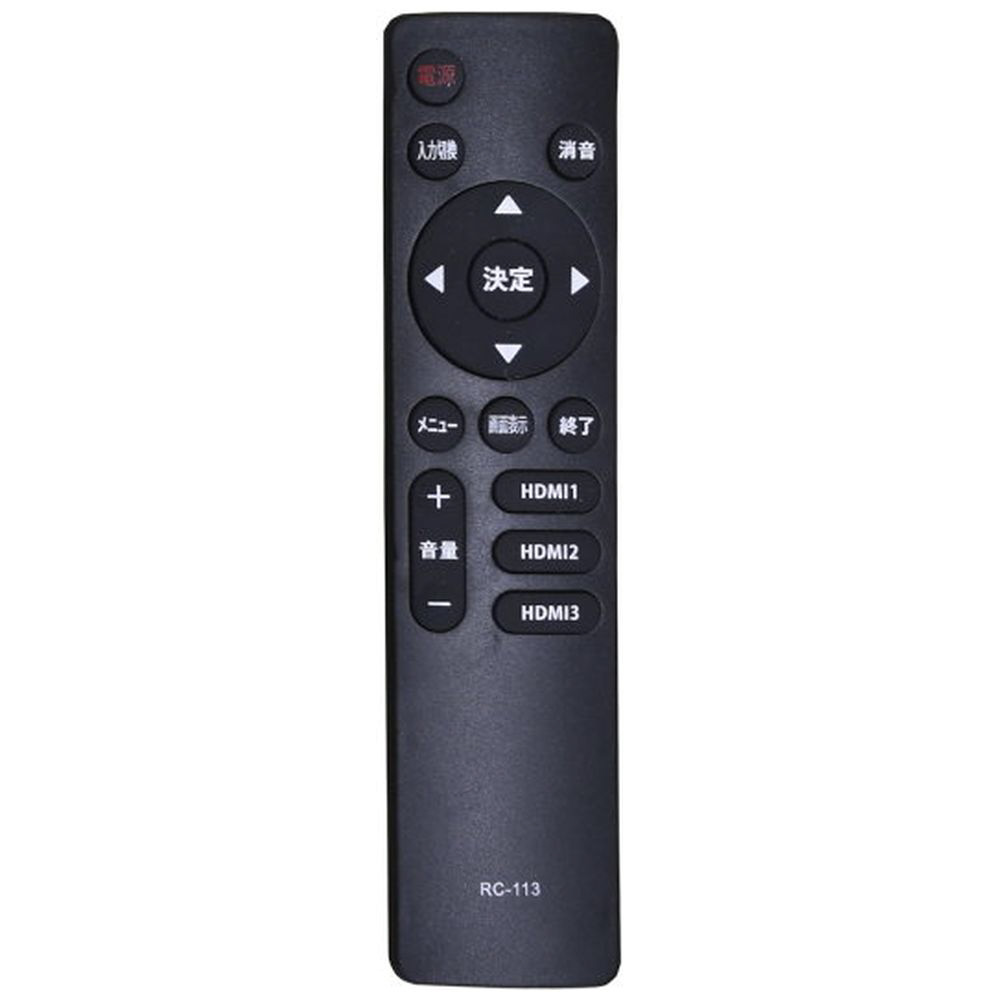 付属品 リモコン(RC-113)、リモコン用電池(単4)x2、スタンド(左右)、スタンド取付用ビス x4、取扱説明書、保証書