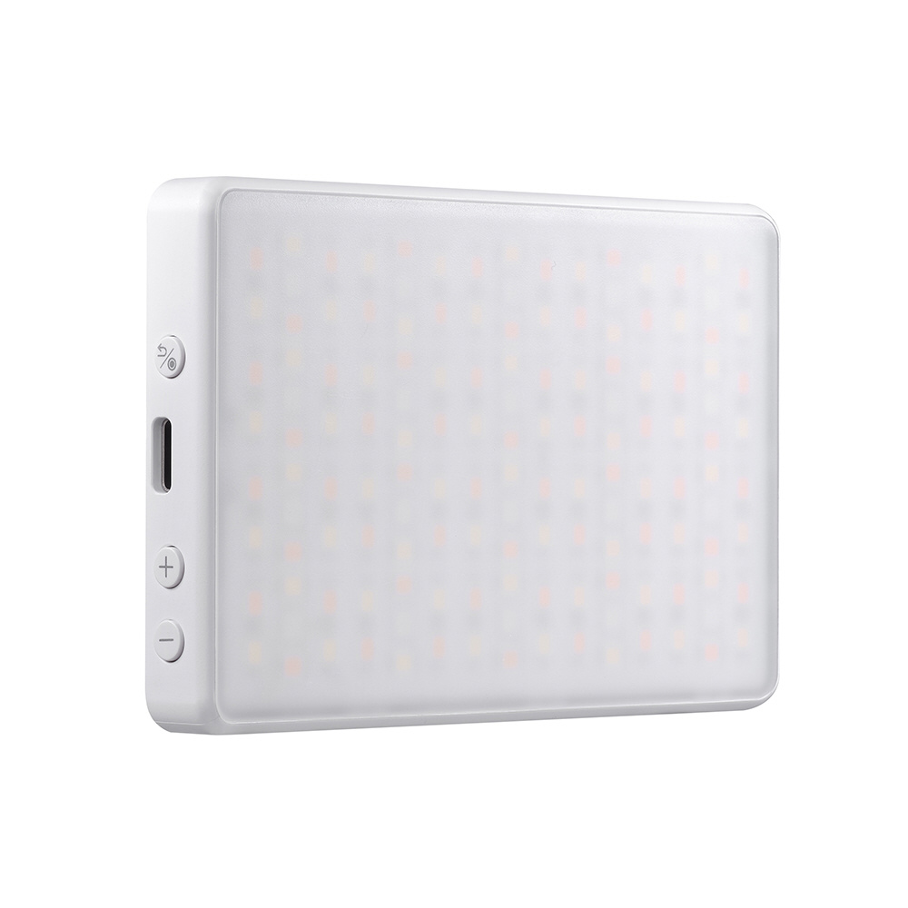 ●リチウムバッテリー仕様:3.7V、4900mAh、18.13Wh●電力:5W(セルフィー用ライトは0.8W)●充電・給電:USB-C●入力:5V/3A、9V/2.22A、12V/1.67A、18W(最大)●出力:5V/3A、9V/2.22A、12V/1.67A●充電時間:約1.5h●バッテリー動作時間:100%の明るさ:約3時間40分、50%の明るさ:7時間20分●色温度:1800-10000K(セルフィーランプは2800-6500K)●GM調整:-50から+50●明るさ範囲:0〜100%●モード:CCTモード、HSIモード、FXモード(FXは14種:(フラッシュ、稲妻、曇り、壊れた電球、テレビ、ろうそく、炎、花火、爆発、溶接、パトカー、SOS、カラー循環、パーティー)●演色性:CRI>95、TLCI>97(セルフィー用ライトはCRI>96、TLCI>98)●制御方法:本体ボタン、Bluetooth(アプリ)●Bluetooth制御距離:最大30m●動作温度:-10から40℃●サイズ:105×68×13mm●重量163g