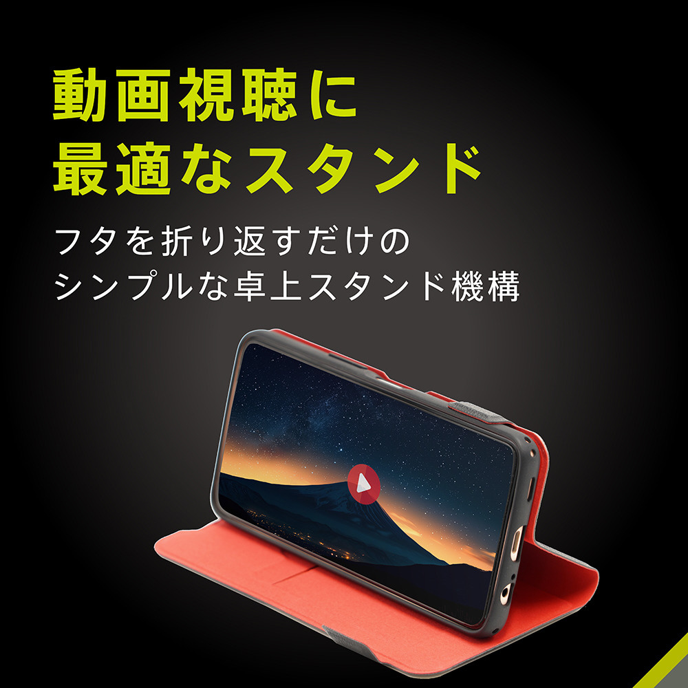 薄くて軽く、端末のフォルムを損ねない手帳型ケースです。耐久性と質感が高いレザー調素材と、衝撃吸収性能を持つTPU素材が端末を守ります。