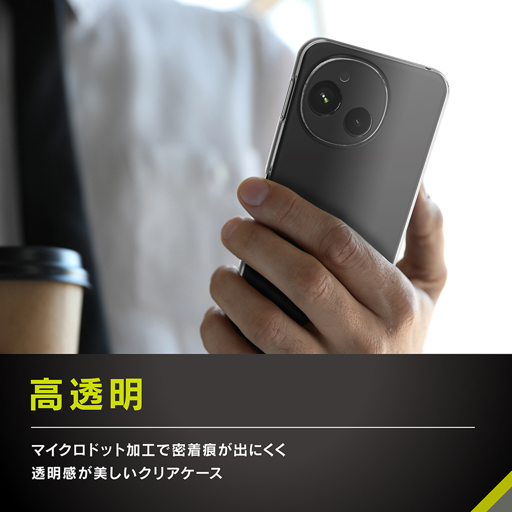 背面を表面硬度5Hの超硬質素材、側面をやわらか素材で傷や衝撃から守る、ハイブリッド構造クリアケースです。