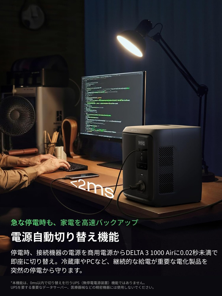 照明や冷蔵庫、テレビなど主要な電化製品をしっかり稼働。さらに、独自のX-Boost機能で最大800Wの電化製品に対応し、小型ならケトルやドライヤーも。
