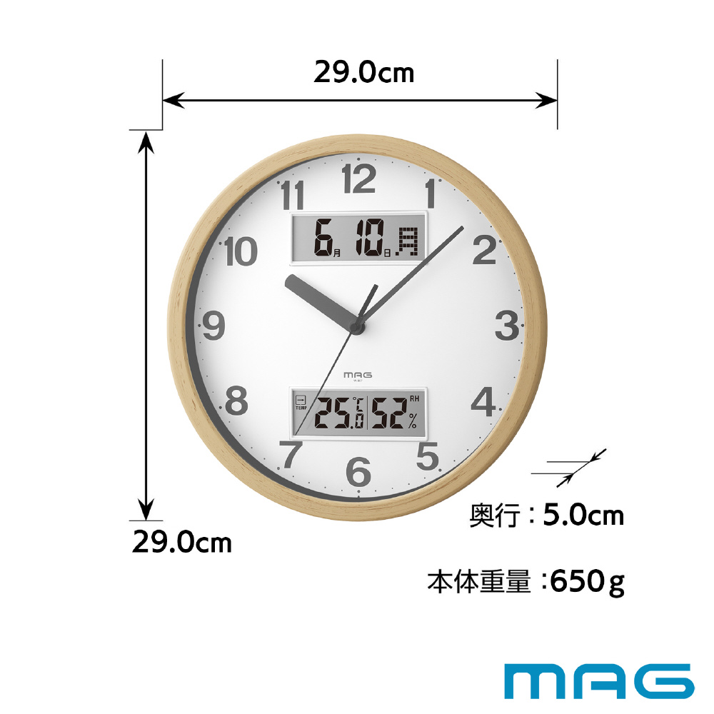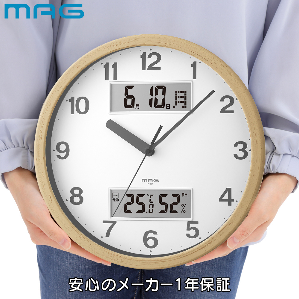 木目調の多機能時計 アナデジ掛時計 ダブルポイント ナチュラル 木目調 W-807 N-Z