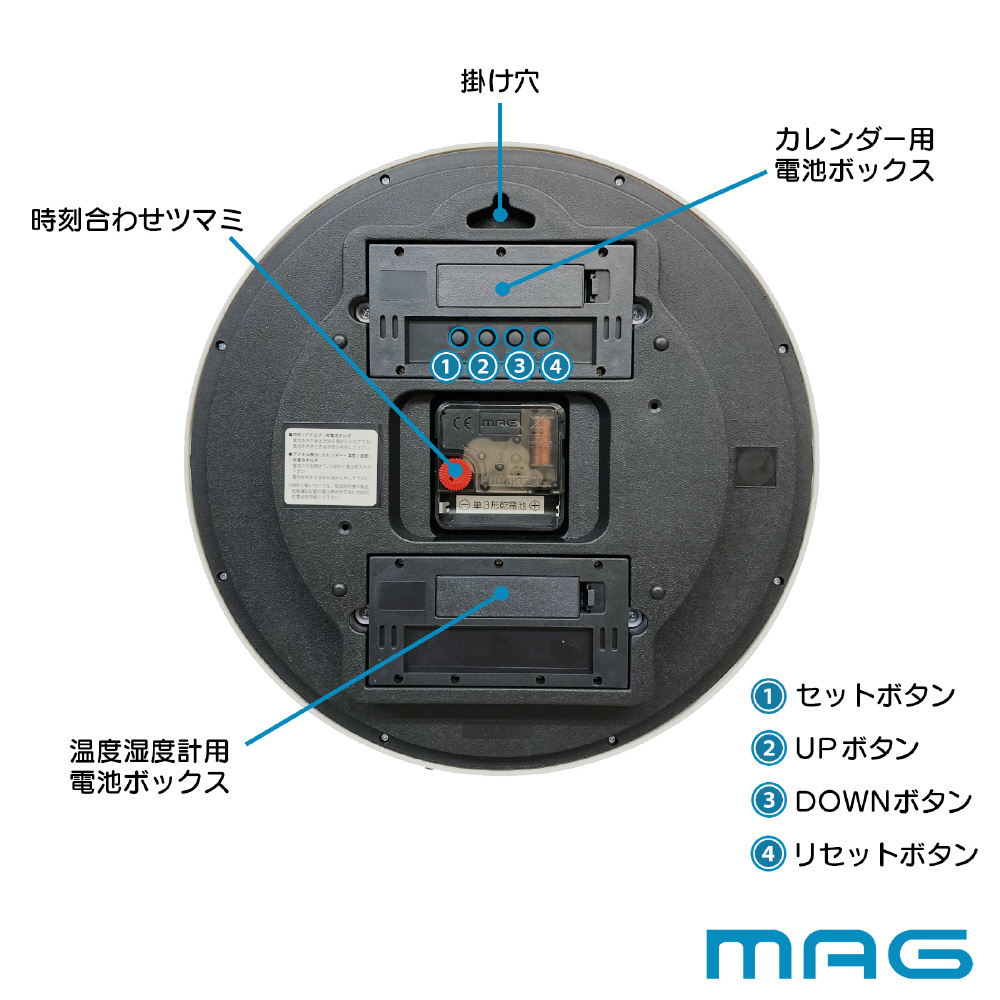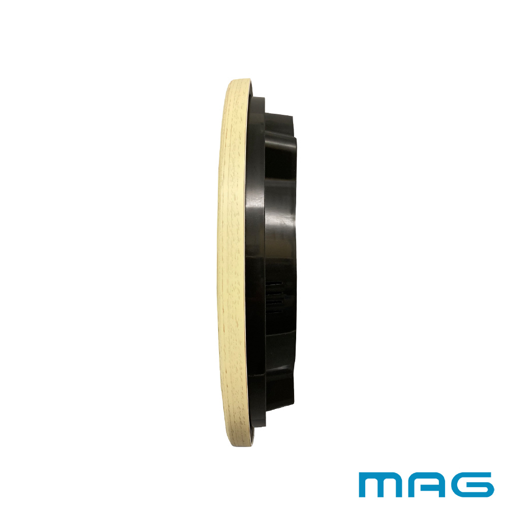 インテリアに合わせやすい木目調。多機能な温度・湿度・カレンダー表示付き。