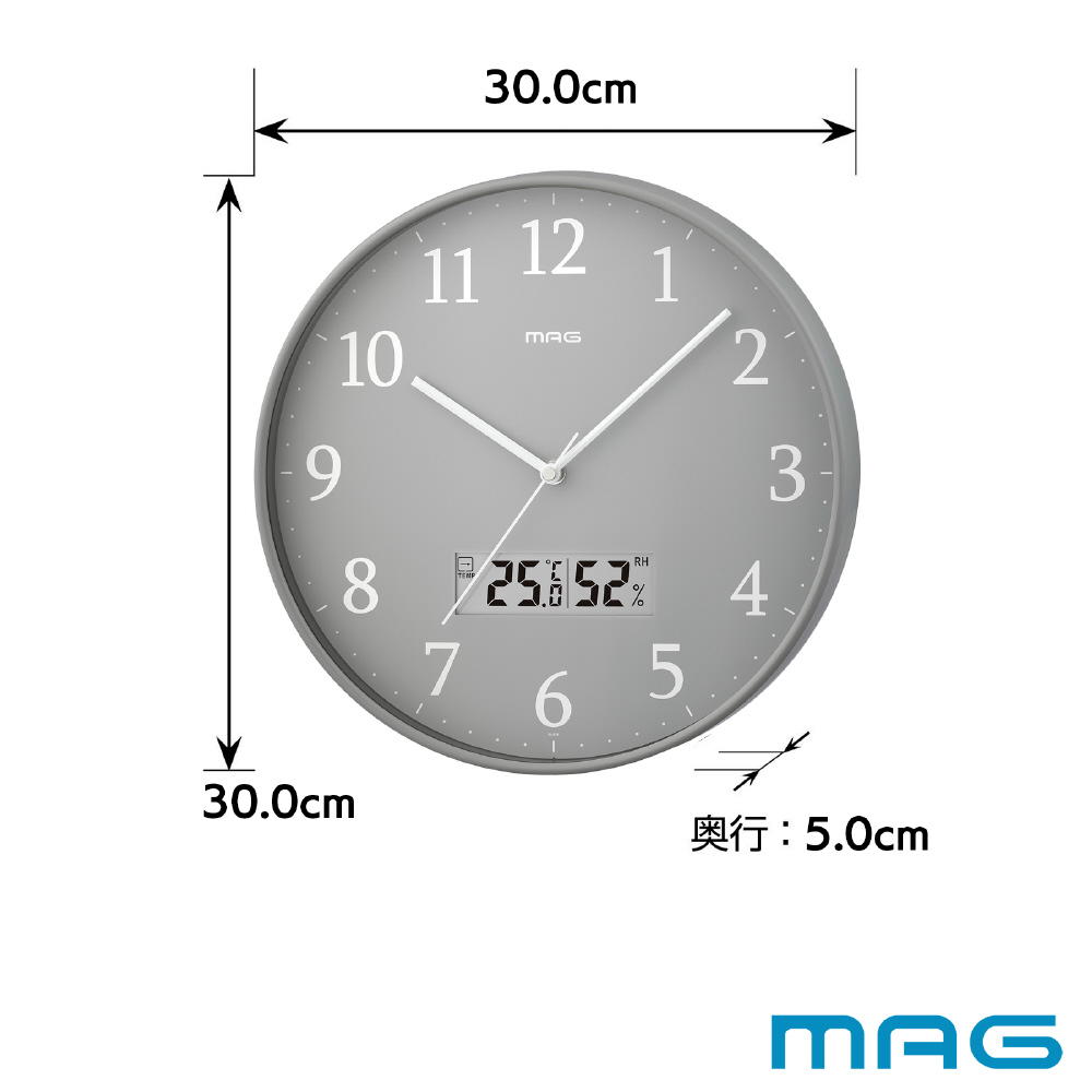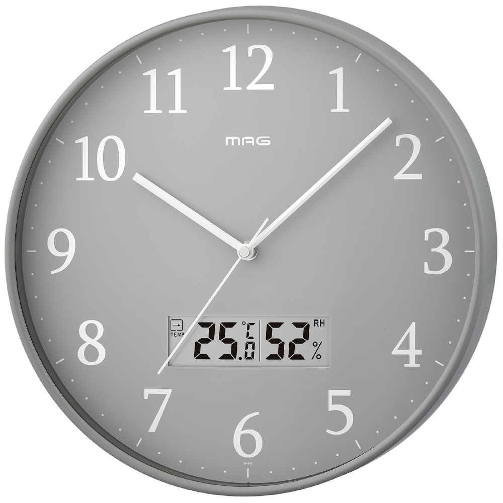 インテリア 電波 アナログ 温時計 湿度計 壁掛け時計 グリージョ グレー W-816 GY-Z [電波自動受信機能有]
