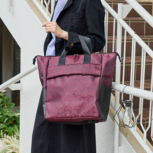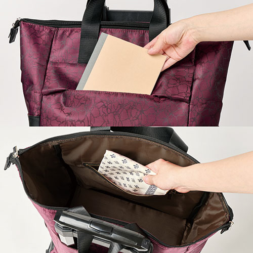 4輪カート リーフレース 横押し カート・トートバッグの2WAY仕様 ジャガード織の優雅なデザイン ボルドー REP-575925BOR