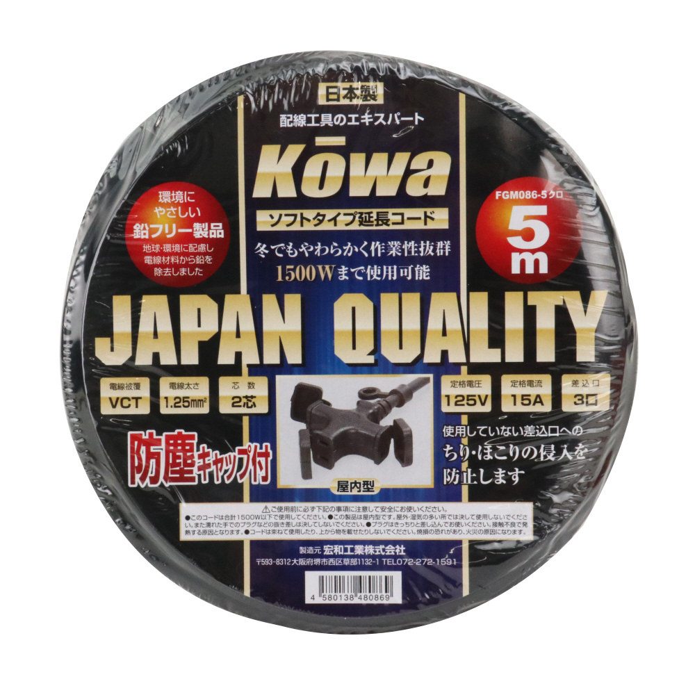 延長コード 15A×5m FGM086-5 クロ FGM086-5