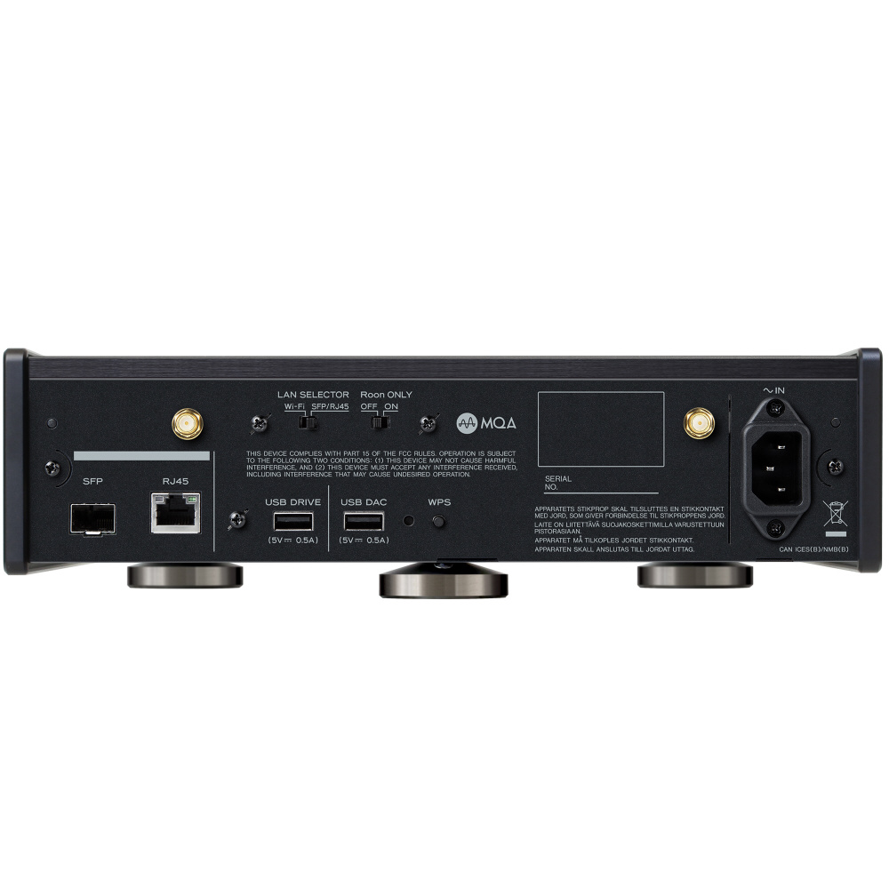 先進の「TEAC Network Engine G4」を搭載し、細部に至るまで音質最優先の設計。ノイズ源となるスイッチング素子を使わない大型リニア電源、SFP光ネットワークやRJ45、Wi-Fi 6に対応。DACとの接続は電源部を独立させた高音質USB端子を装備し、音質に磨きをかけています。