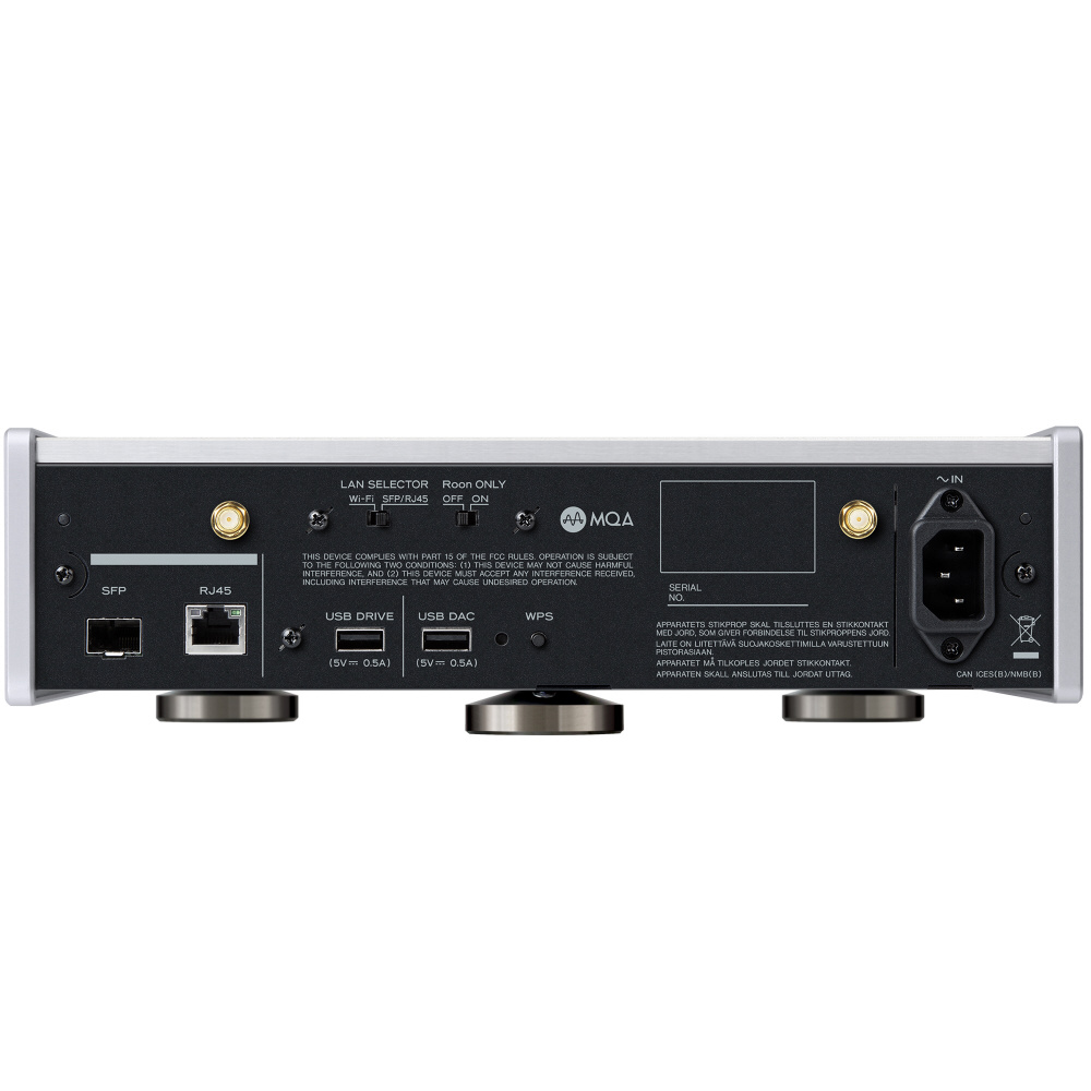 先進の「TEAC Network Engine G4」を搭載し、細部に至るまで音質最優先の設計。ノイズ源となるスイッチング素子を使わない大型リニア電源、SFP光ネットワークやRJ45、Wi-Fi 6に対応。DACとの接続は電源部を独立させた高音質USB端子を装備し、音質に磨きをかけています。