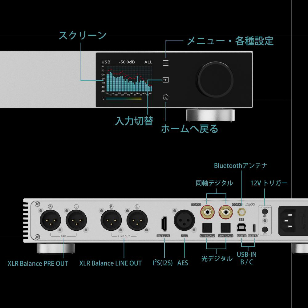備えているすべての入力からD900の高性能DAC出力を制限なく利用することができ、アンプコンポーネントとセットアップすることで、ハイグレードオーディオシステムの“サウンドの心臓部”を担うことができます。