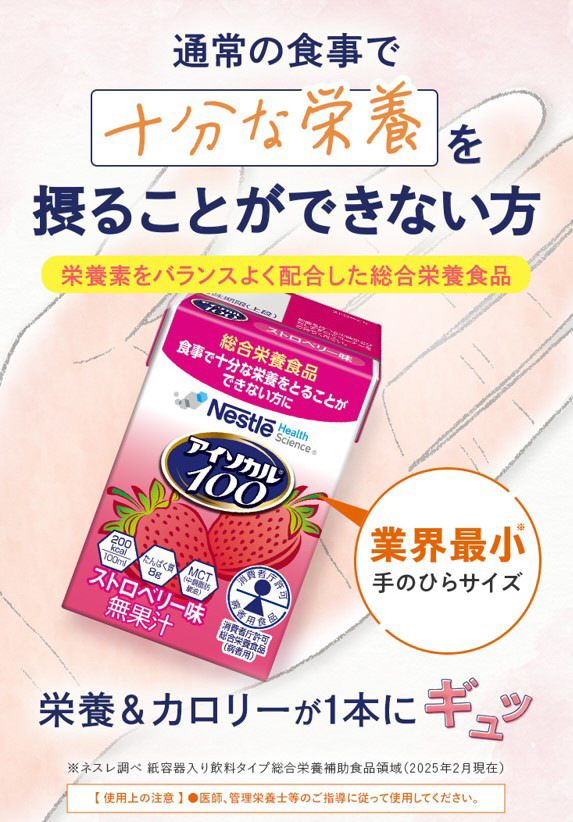 わずか100mlの中にギュッと詰め込みました。総合栄養食品。熱量200kcal、