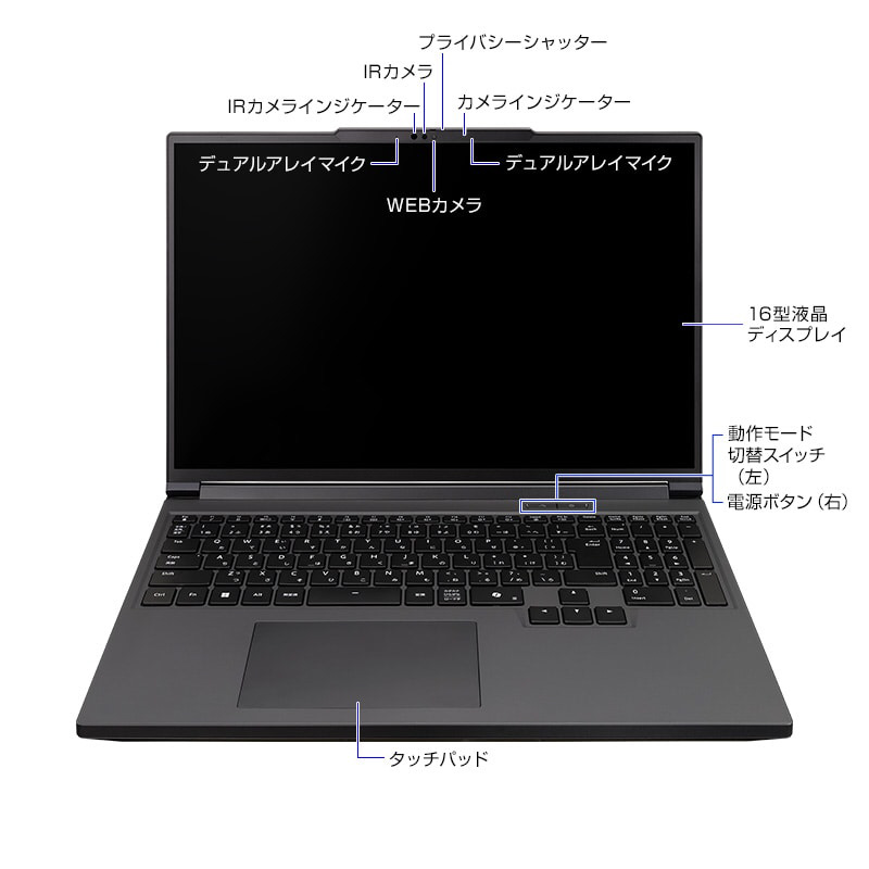 WEBカメラ 前面:200万画素( Windows Hello 顔認証対応 / プライバシーシャッター付き )