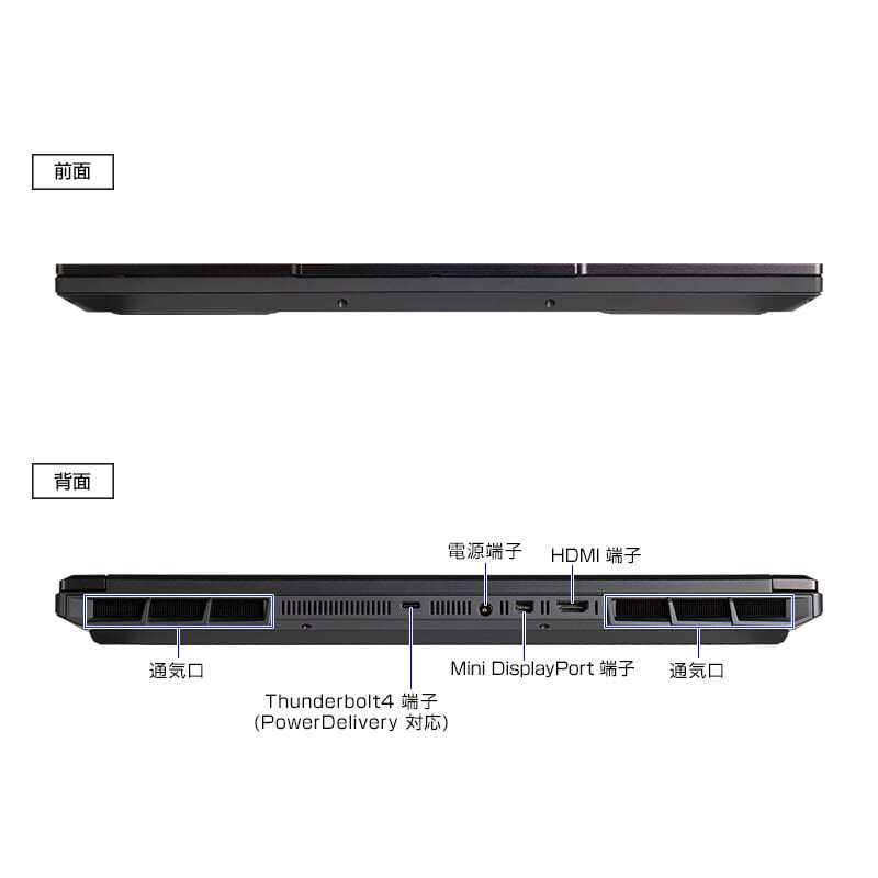 ディスプレイ出力(背面:Mini DisplayPort×1/HDMI×1/Thunderbolt 4×1、左側面:USB 3.2 Gen 2 Type-C×1)