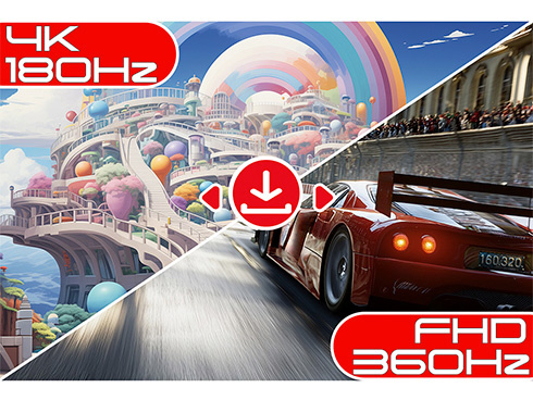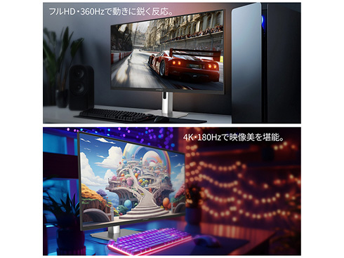■DFR(Dual Frame Rate)に対応。用途やコンテンツに応じて、解像度/リフレッシュレートをボタンひとつで簡単に切り替え可能です。グラフィックを楽しむ4Kゲームを180Hzのリフレッシュレートで快適に、動きの速いFPSなどのゲームでは、フルHDで最大360Hzの高速リフレッシュレートによるスムーズなプレイが可能となり、1台で様々なジャンルのゲームを楽しめます。