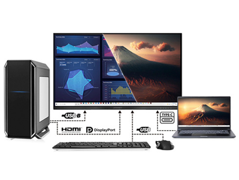 ■KVM機能に対応。モニターに接続したキーボード、マウスをデスクトップPCやUSB-C接続のノートPCで入力を切り替えた際にもそのまま使用可能です。