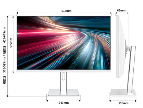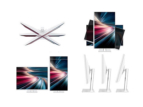 ■高さ調整が可能な昇降式多機能スタンドを搭載、最大140mmの範囲(横置時)で最適な高さに画面を調整可能です。また縦画面として使用出来るピボット(回転)機能にも対応します。スイーベル(首振り)機能は、左右各30°の範囲で動かせます。