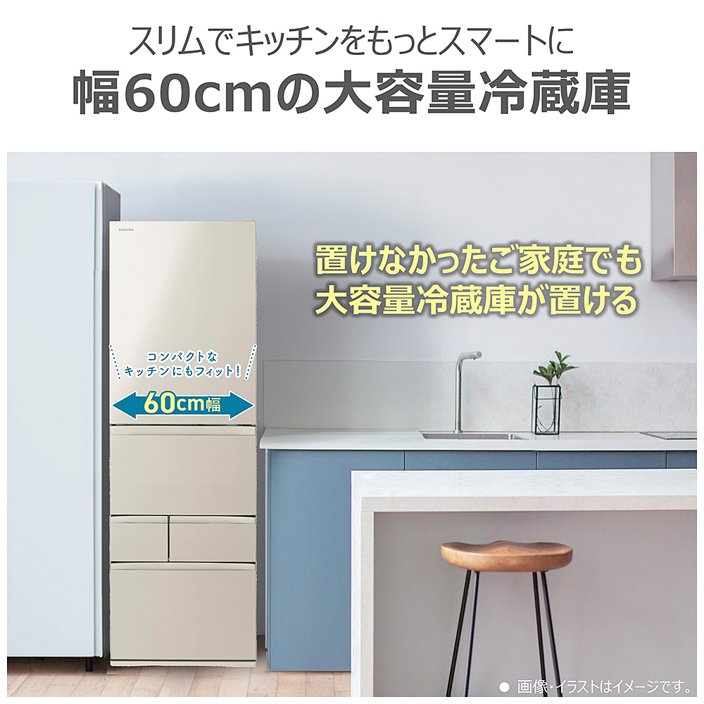 ・「速鮮チルド」東芝独自のツイン冷却により、食品が凍らない-4℃前後の高湿度冷気を送り込み、買い物後に温度が上がった食材を急速に冷やし、鮮度が落ちるのを防ぎます。また、常温の缶飲料をすぐにひんやりさせたいときにも便利です。