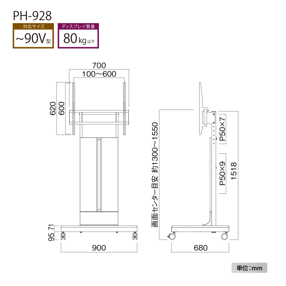 総耐荷重:120kg(取付ディスプレイ:80kg以下)