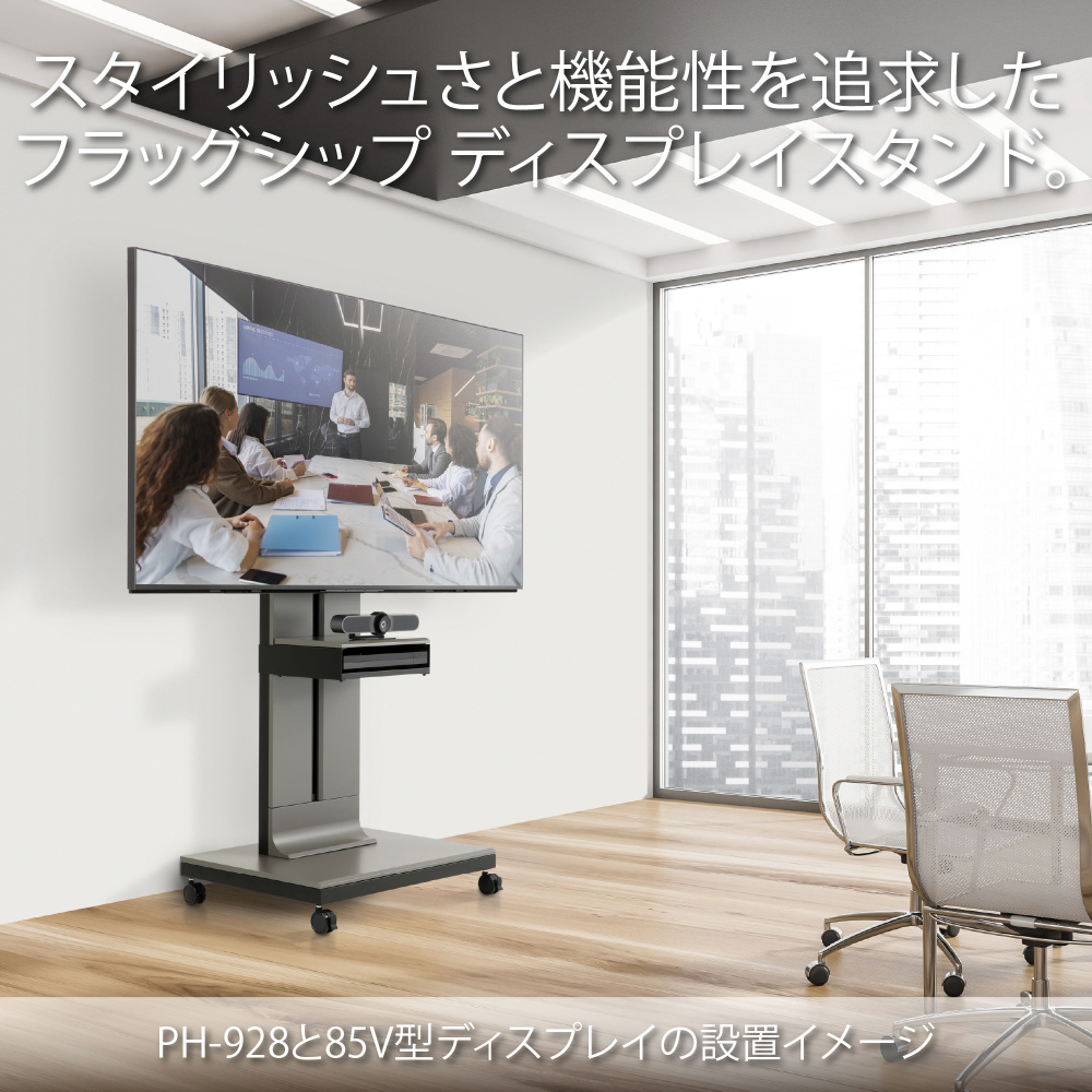 配線収納など機能性だけでなくスタイリッシュなデザイン性も備えたディスプレイスタンド