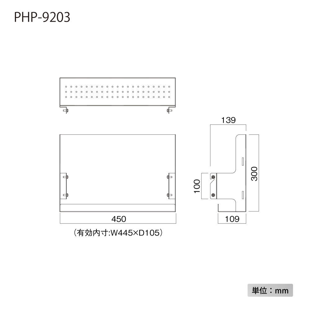 幅W450mm×D139×H300mm。質量約3.5kg(有効内寸:幅445×奥行105mm)