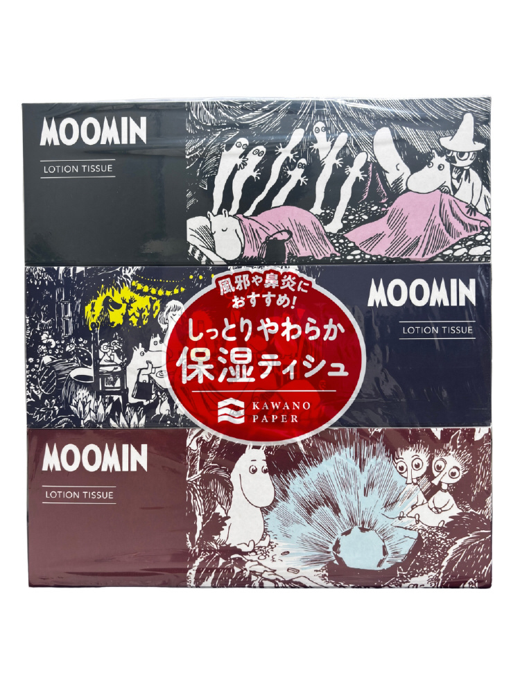 1945年、フィンランドで、トーベ・ヤンソンによって生み出されてから今日まで、ファンタジックな北欧の香りの中に、ユーモアや哲学的なスパイスも効いている童話やコミックスのシリーズが、世界中に愛されている「ムーミン」。そんな、物語の奥深さ・アート性の高いキャラクター「ムーミン」のティシュを、価値ある高品質を生み出す河野製紙が発売いたします。
