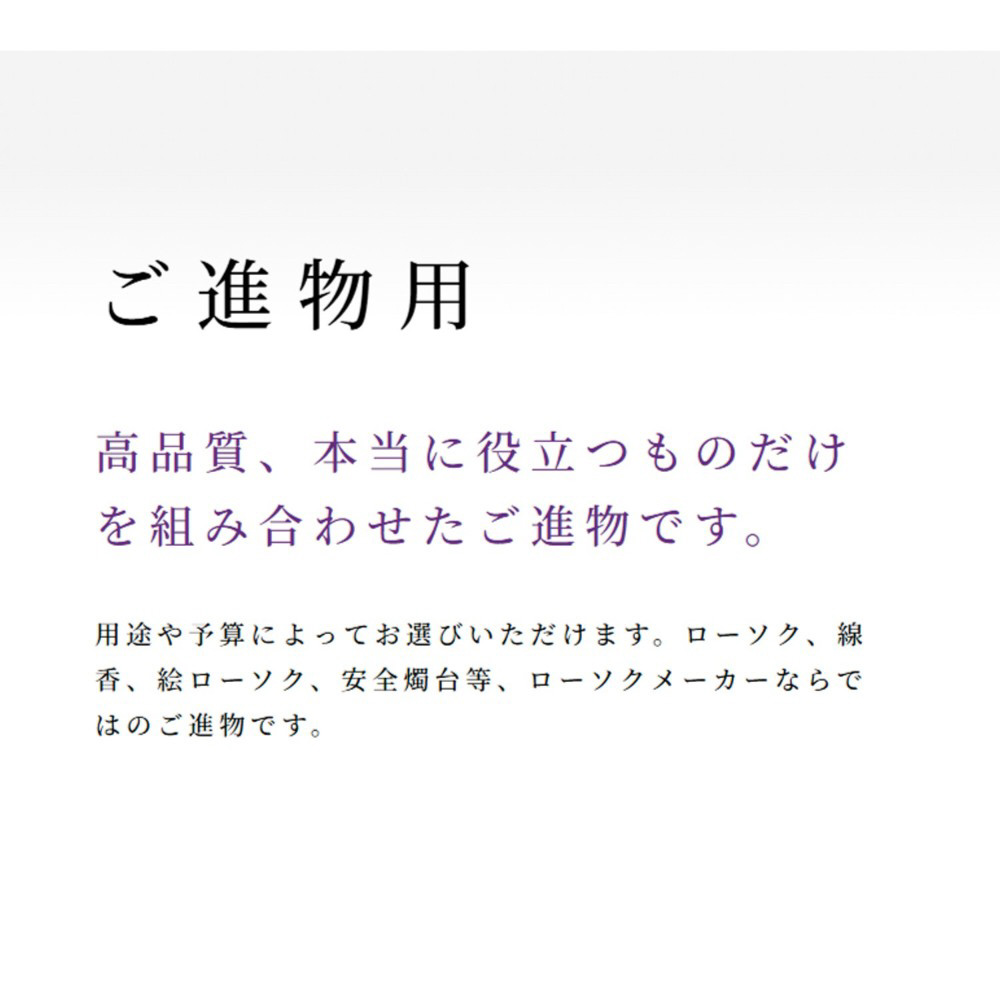 高品質、本当に役立つものだけを組み合わせました。ローソクメーカーならではのご進物です。
