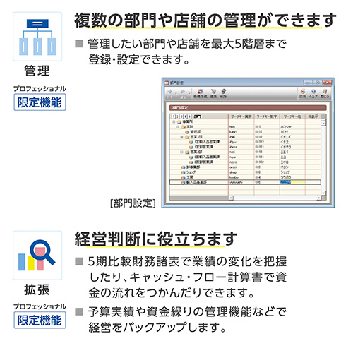 ・部門管理や経営分析など多機能な会計ソフトをご利用したい方