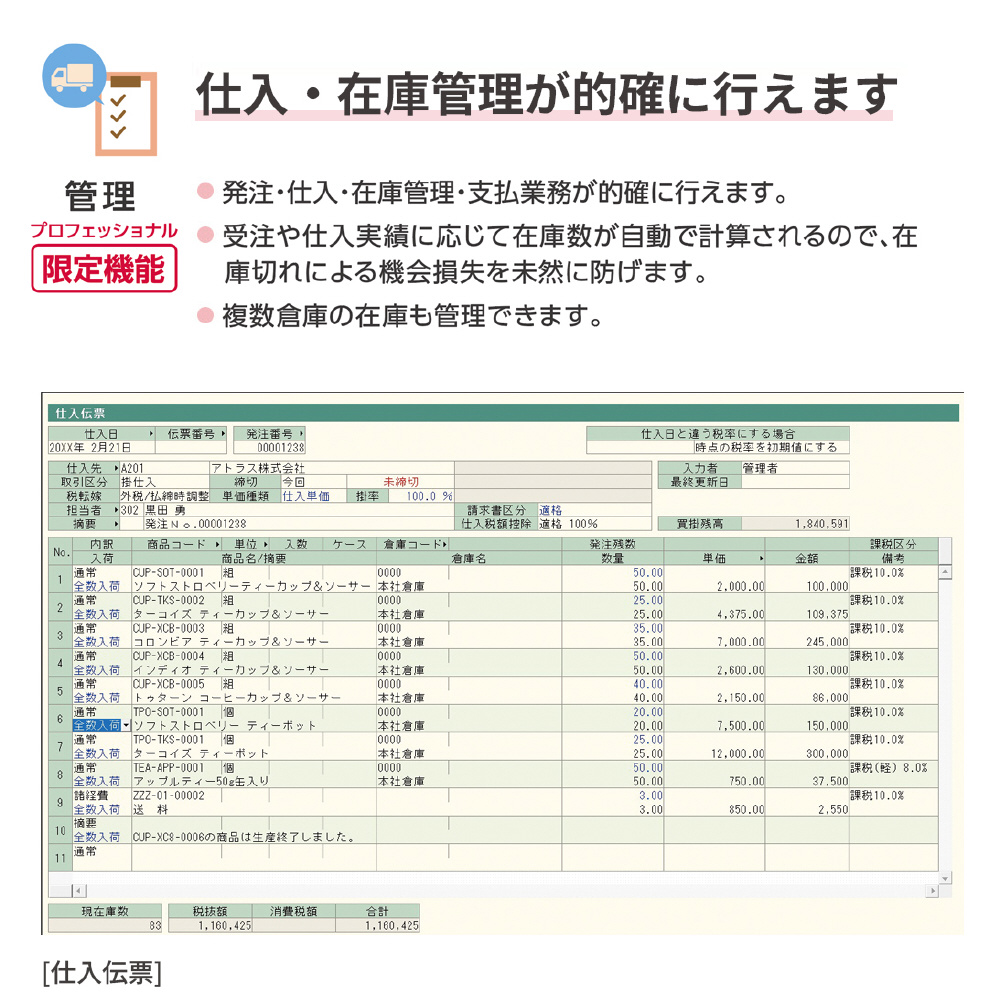 販売業務から、仕入・在庫管理までをフルカバー!