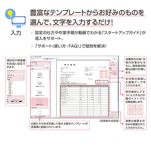 買ったその日からだれでもかんたんに 見積書・納品書・請求書がつくれる。