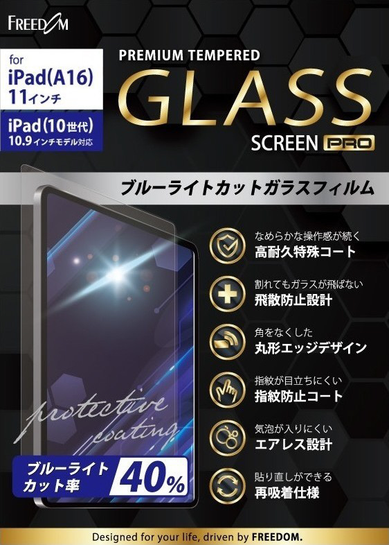 11インチ iPad(A16 2025年モデル)、10.9インチ iPad(第10世代)用 ブルーライトカットガラスフィルム FTB-IPAG25BLF