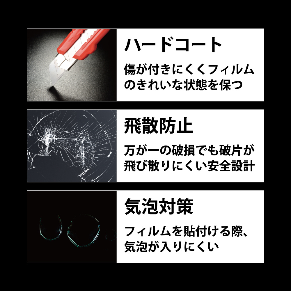 材質:接着面-シリコン、外側-高硬度アルミノケイ酸塩強化ガラス・PET