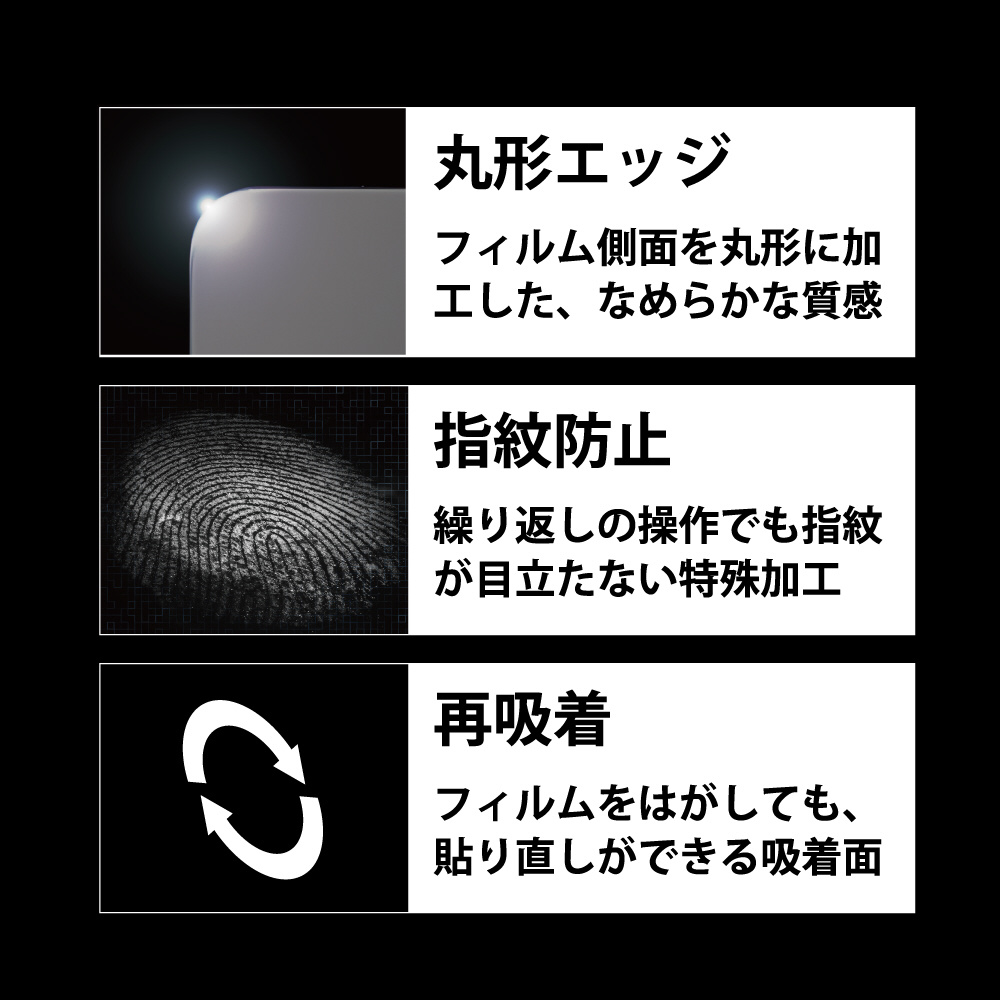 フィルム側面を丸形に加工した、なめらかな質感。