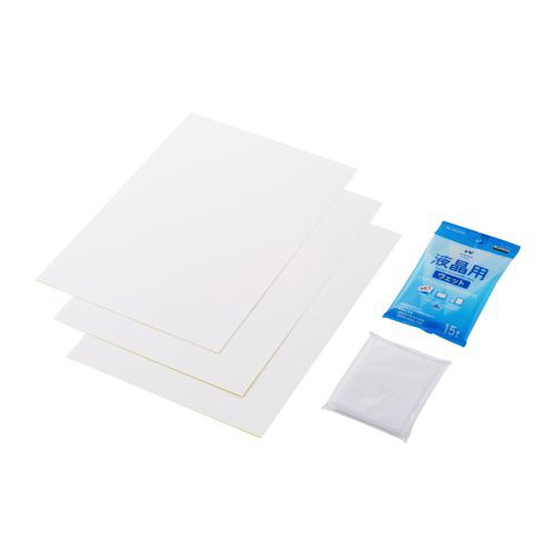 これひとつでプリンターの日常的なメンテナンスが可能。掃除しにくいプリンターの給排紙ローラーの汚れが取れるインクジェットプリンター専用クリーニングシート、機器本体や画面部分の汚れを拭き取ることができる液晶用ウェットクリーニングティッシュとドライクリーニングティッシュの3点が入った、プリンタークリーニングセットです。
