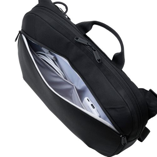 メイン気室には、マウスや充電器・ペンなどをすっきり収納できる小分けポケットを配置。アイテムごとに分けて収納できるので、バッグの中が散らかりにくく整理しやすいです。