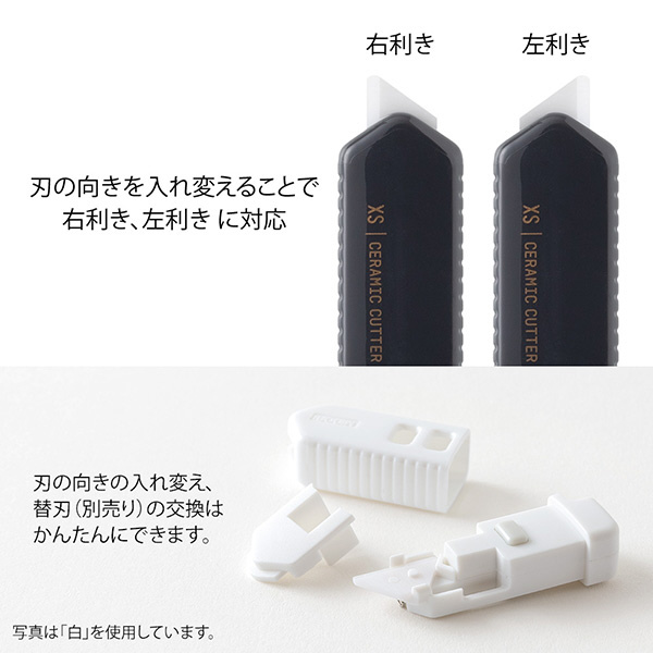 耐久性に優れたセラミック刃を内蔵した、極小サイズのセラミックカッターです。約6mm刃渡りと、丸い刃先で、安全性に配慮したつくりになっています。封筒の開封や紙の切り抜きなどのちょっとした日常使いから、仕事先でのカット作業、ダンボールの開梱などにもおすすめです。