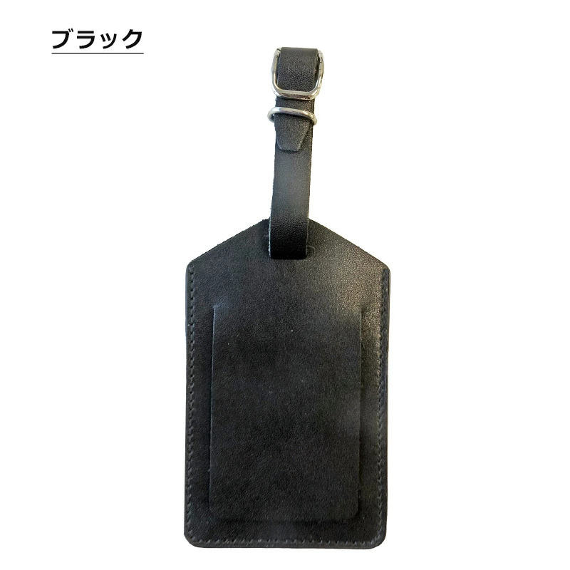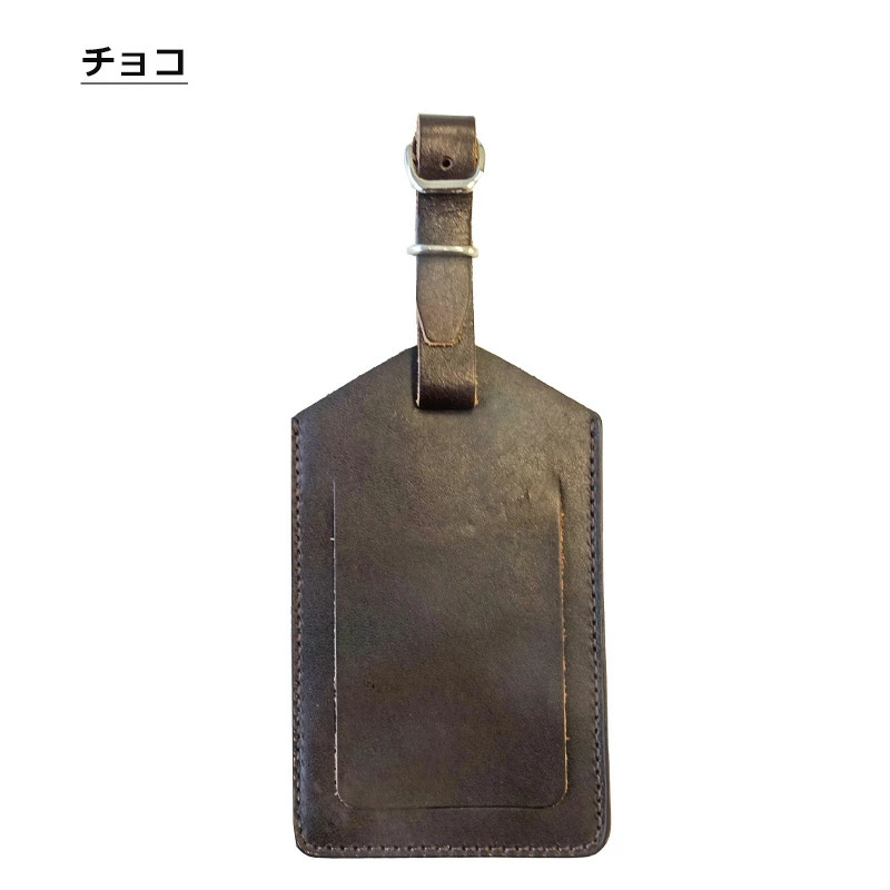 本革(スプリットレザー)を使用したネームタグ。荷物の目印として、また、ロストバゲージになった際に、荷物を手元に戻すための手がかりとして、ネームタグをつけて旅程表を入れておくことをオススメします。名前が隠れるフラップ付き。