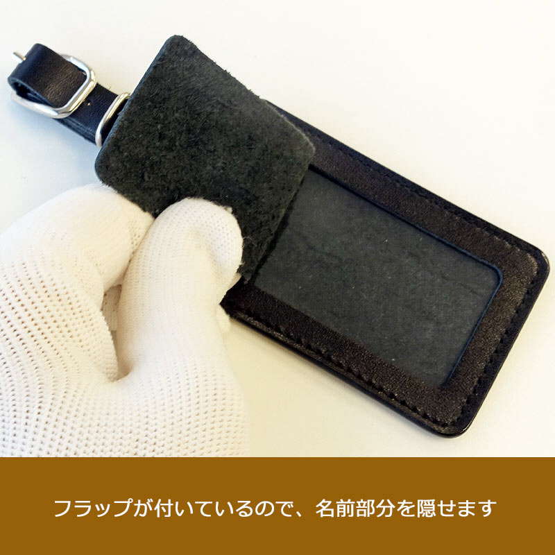 荷物の目印として、また、ロストバゲージになった際に、荷物を手元に戻すための手がかりとして、ネームタグをつけて旅程表を入れておくことをオススメします。名前が隠れるフラップ付き。