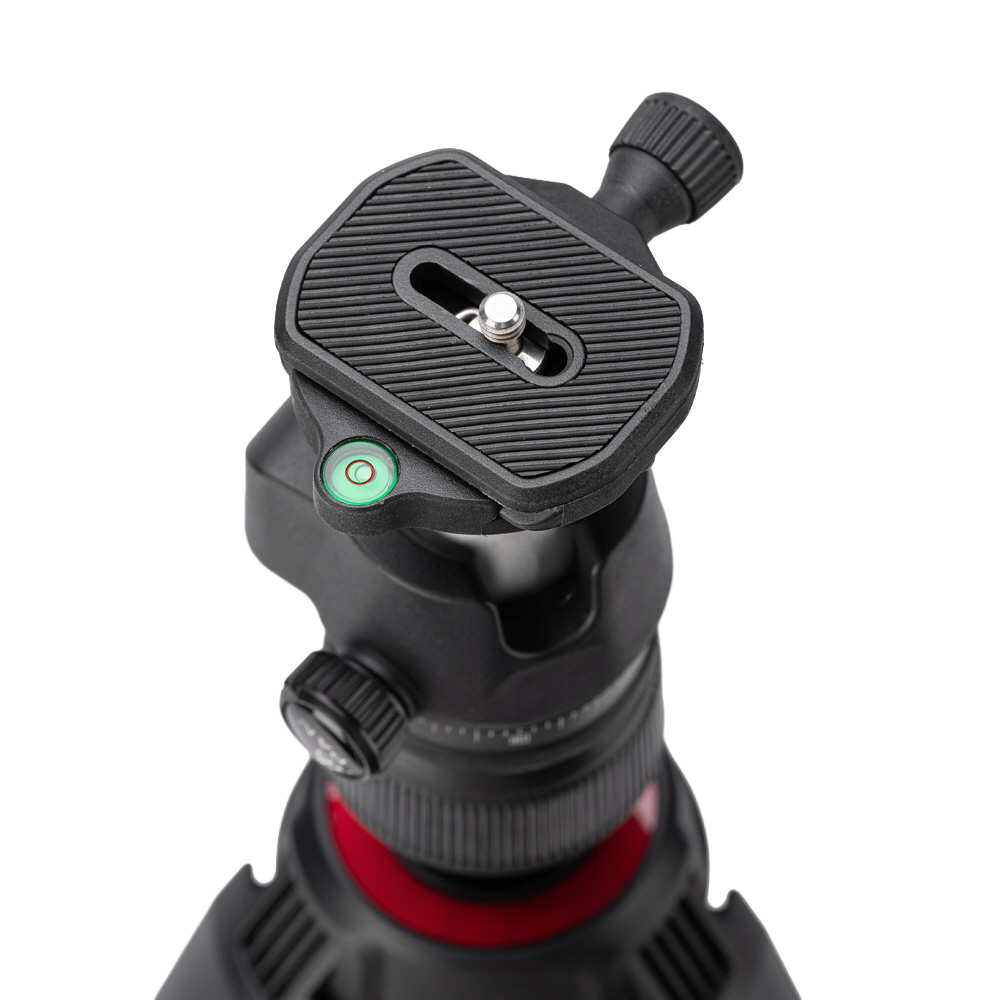 雲台はクイックシューを搭載した自由雲台で、パン操作もスムーズに行えます。カメラの着脱が素早く行えるうえ、水平回転(パン)も滑らかに調整できるため、撮影の自由度が高く、快適に操作できます。