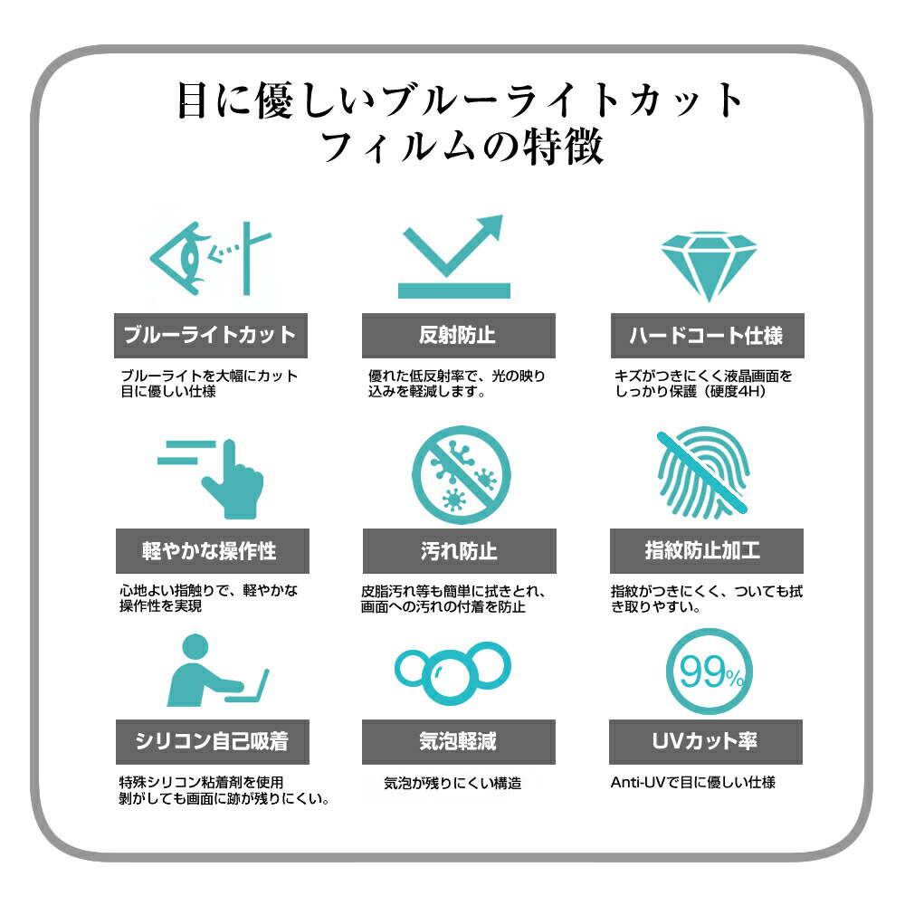 ・指紋防止加工のため、指紋がつきにくく、ついても拭き取りやすいフィルムです。