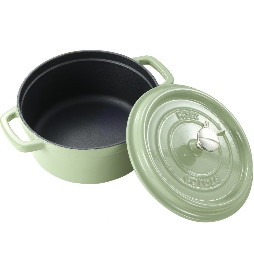 CAROTE(カローテ) ココット鍋 22cm IH ガス火対応 鋳鉄 ホーロー 無水鍋 アップルグリーン NM-5233