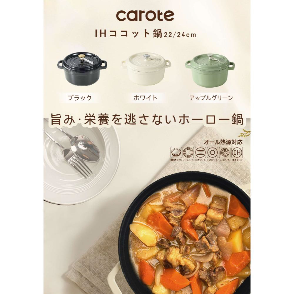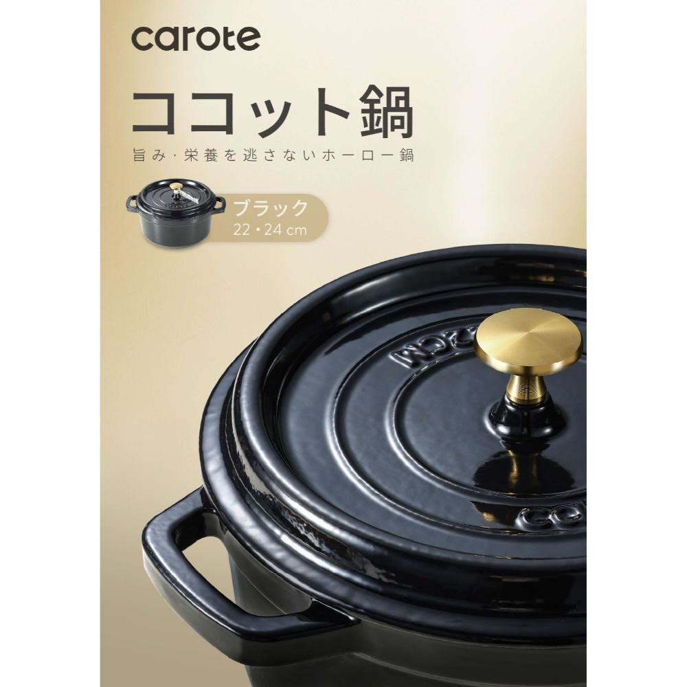 CAROTE(カローテ) ココット鍋 24cm IH ガス火対応 鋳鉄 ホーロー 無水鍋 ブラック NM-5234