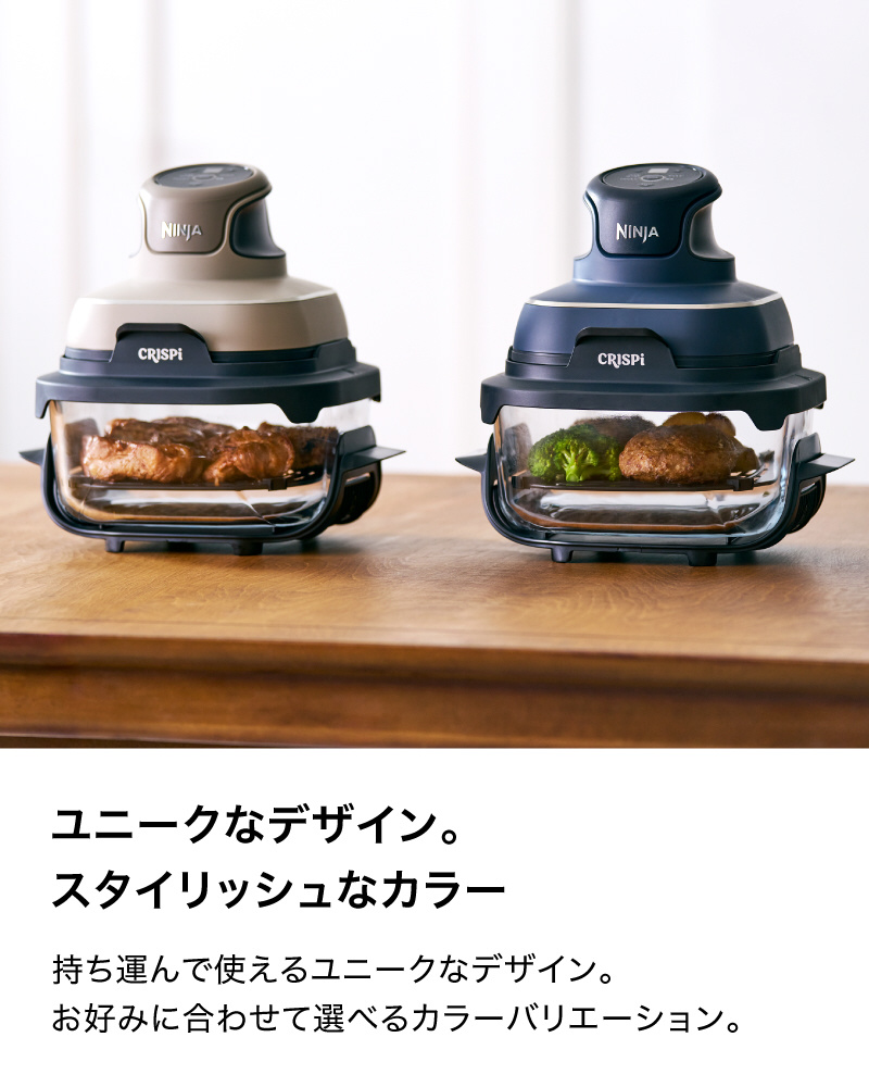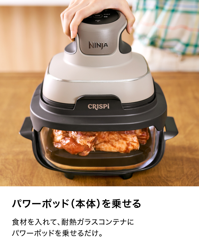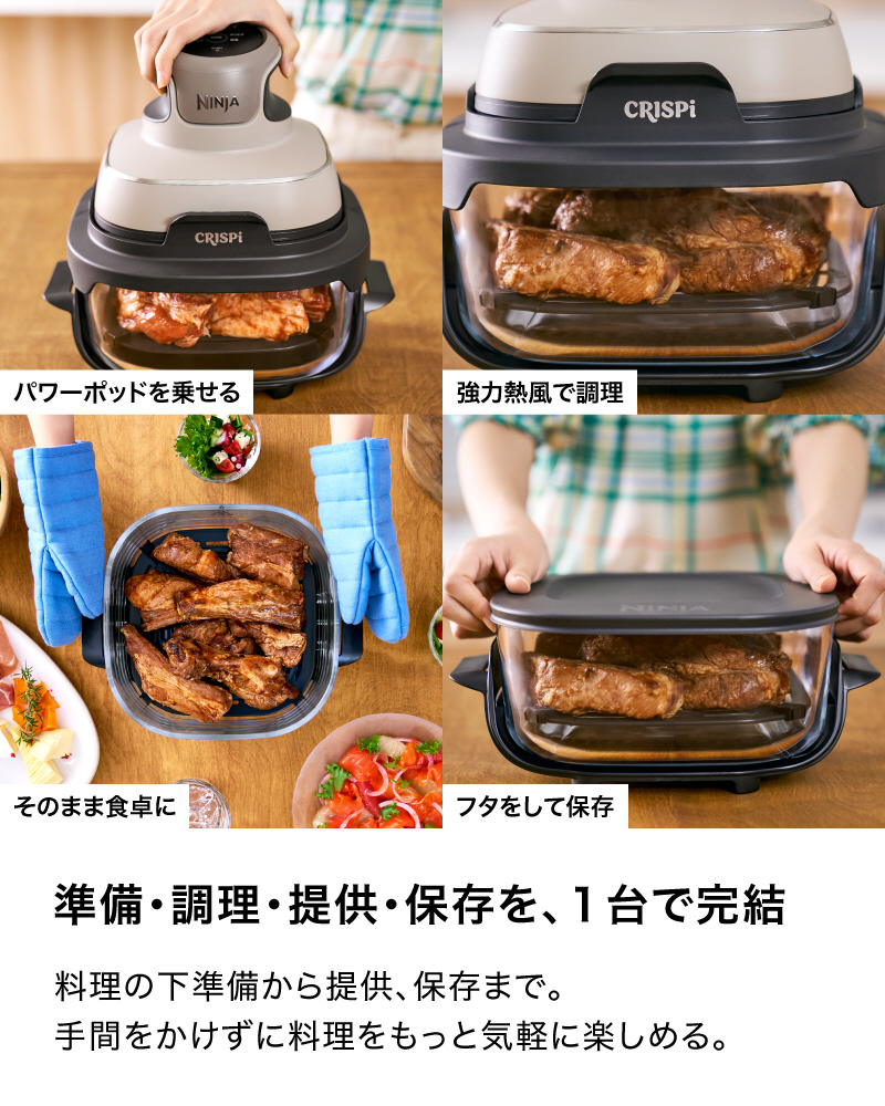 ■ガラスコンテナは電子レンジ対応なので、電子レンジによる下ごしらえとクリスピーによる調理を合わせて、さらにさまざまな料理を楽しめる