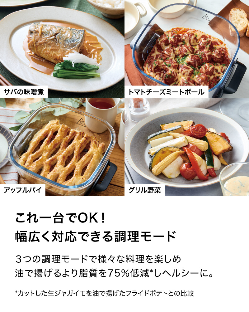 ■ガスや火を使わなくてもグリル調理、焼き魚、ヘルシーな揚げ物などの調理ができるので、誰でも安心して料理を楽しめる