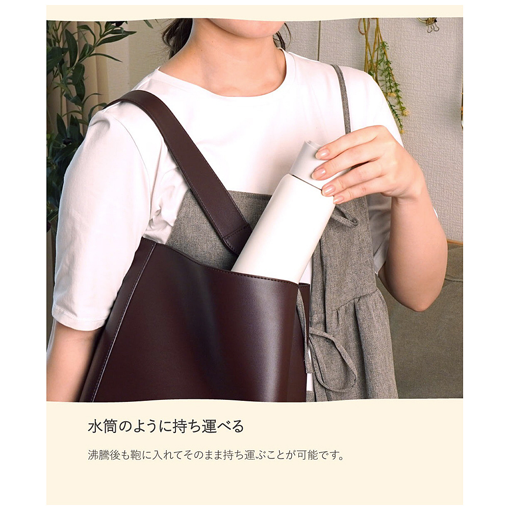 沸騰後も鞄に入れてそのまま持ち運ぶことが可能です。