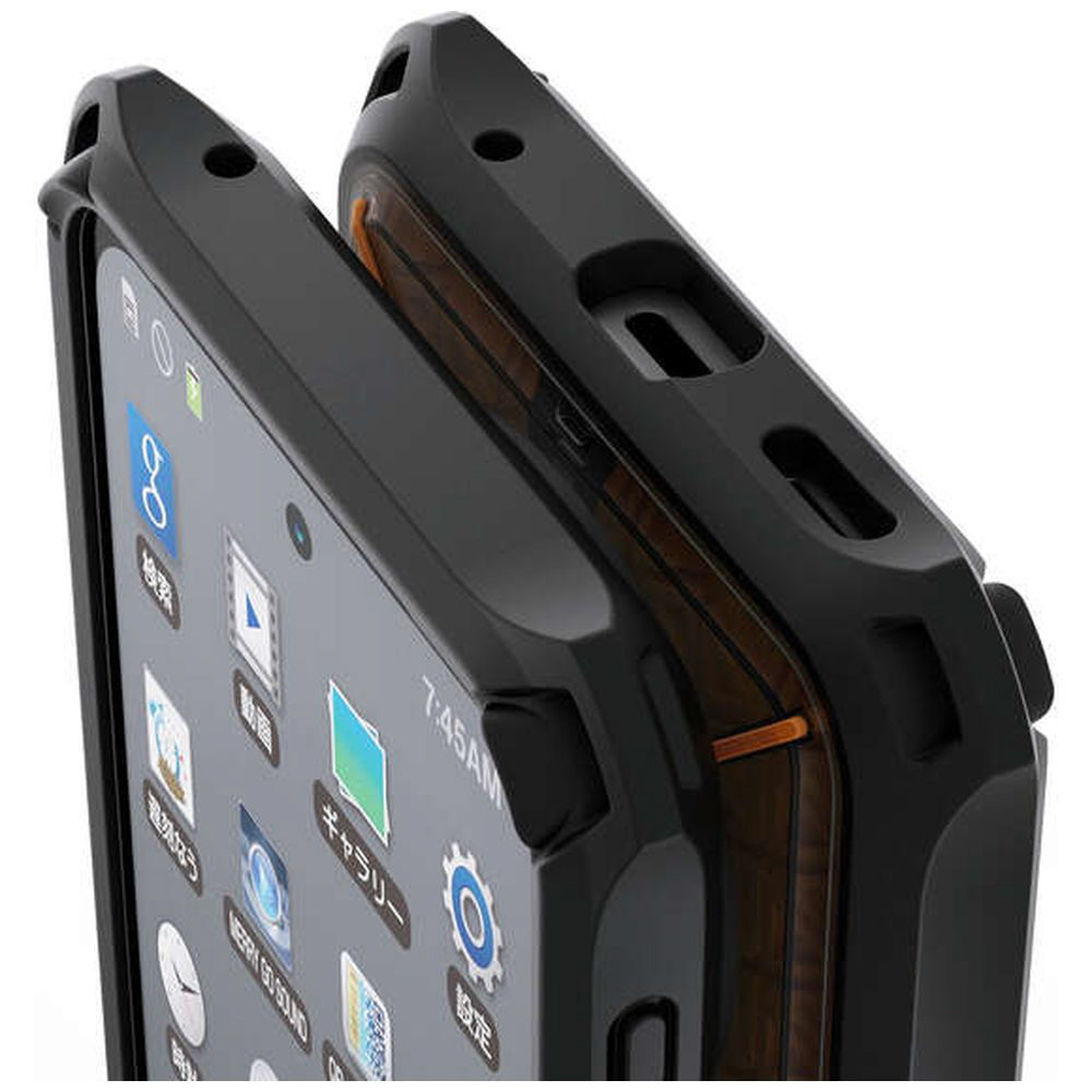 仕様2 ■端末背面、側面が接するケース内側に特殊素材のD3O(R)を装備し、更に衝撃吸収効率の高いトラス構造を採用しています。■凸型に設計されたベゼルガードが画面の傷やダメージを防ぎます。■ストラップの取り付けができる、ストラップホールが付いています。■※本製品にストラップは付属していません。