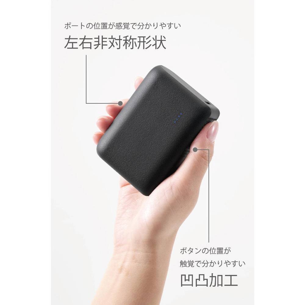 モバイルバッテリー 10000mAh USB-C/USB-A 両面挿し パススルー充電 振動通知 凹凸直感操作 PSE適合 iPhone Android対応 ブラック DE-C78L-10000BK