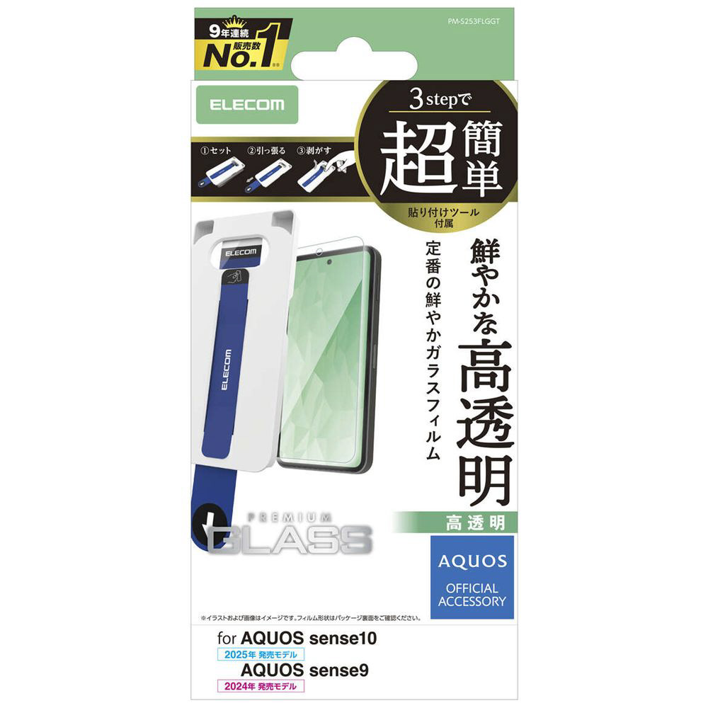 AQUOS sense10 sense9 ガラスフィルム 高透明 超簡単貼り付けツール PM-S253FLGGT