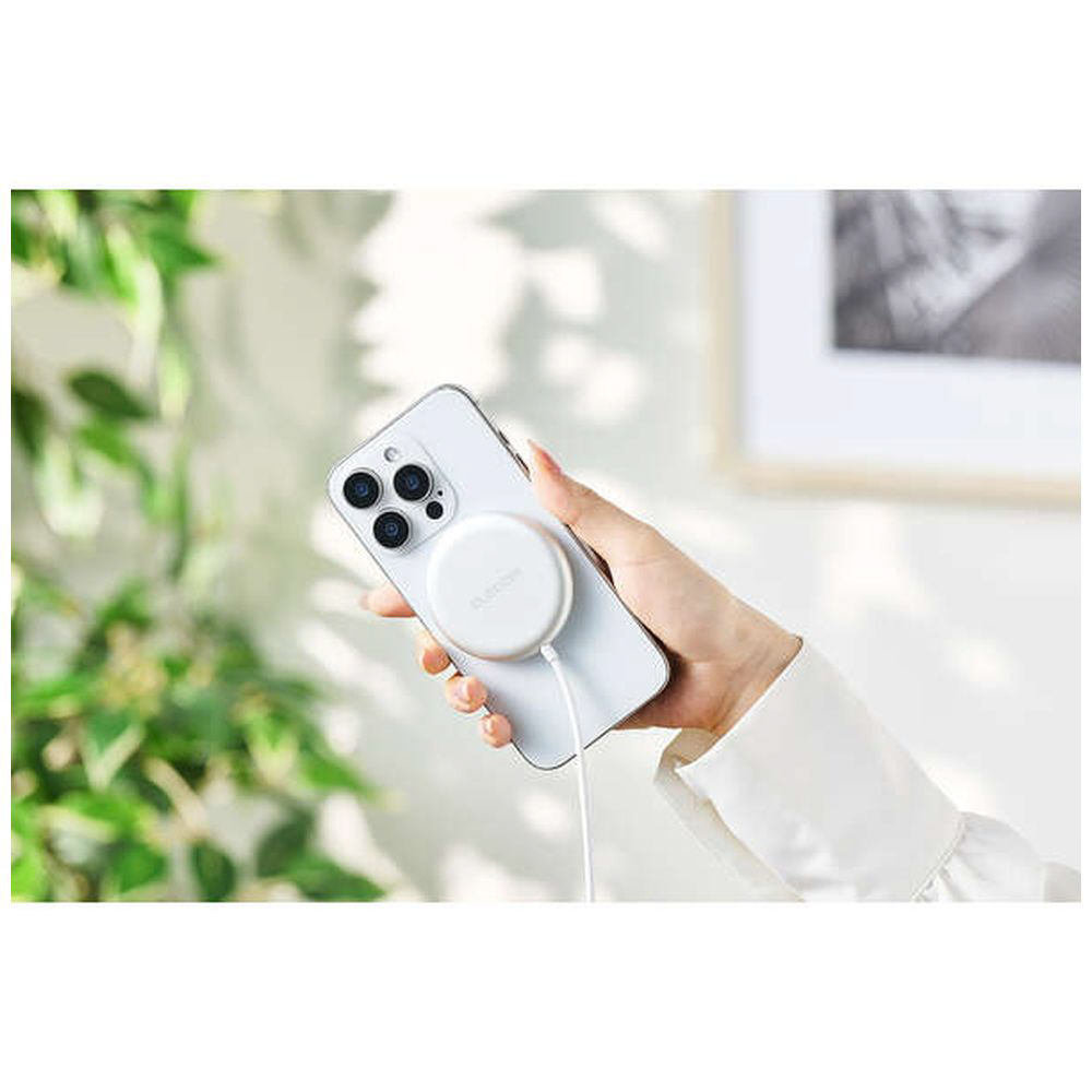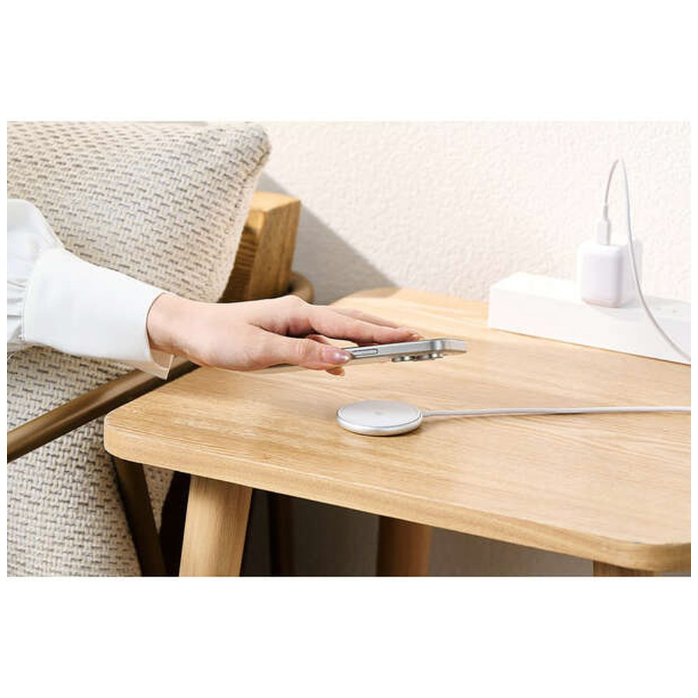 マグネットでスマートフォンの背面にぴったりくっつくため、スマホ操作をしながらの充電も快適です。