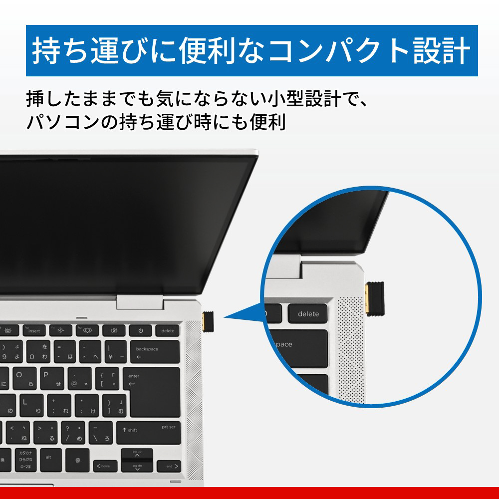 本商品を接続したままパソコンを持ち運んでも邪魔になりにくい小型モデル。小型でありながら抜き挿ししやすい設計です。